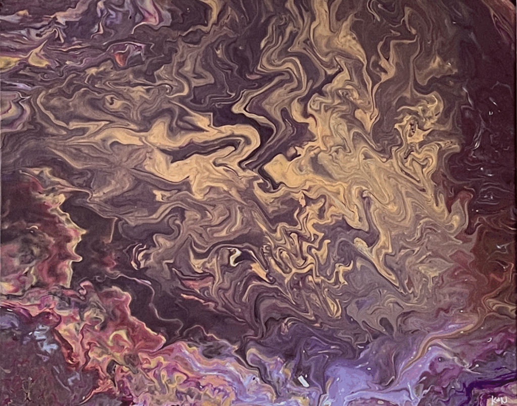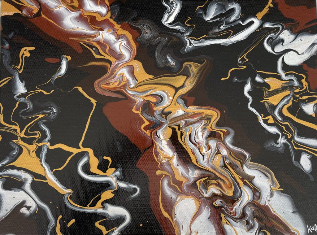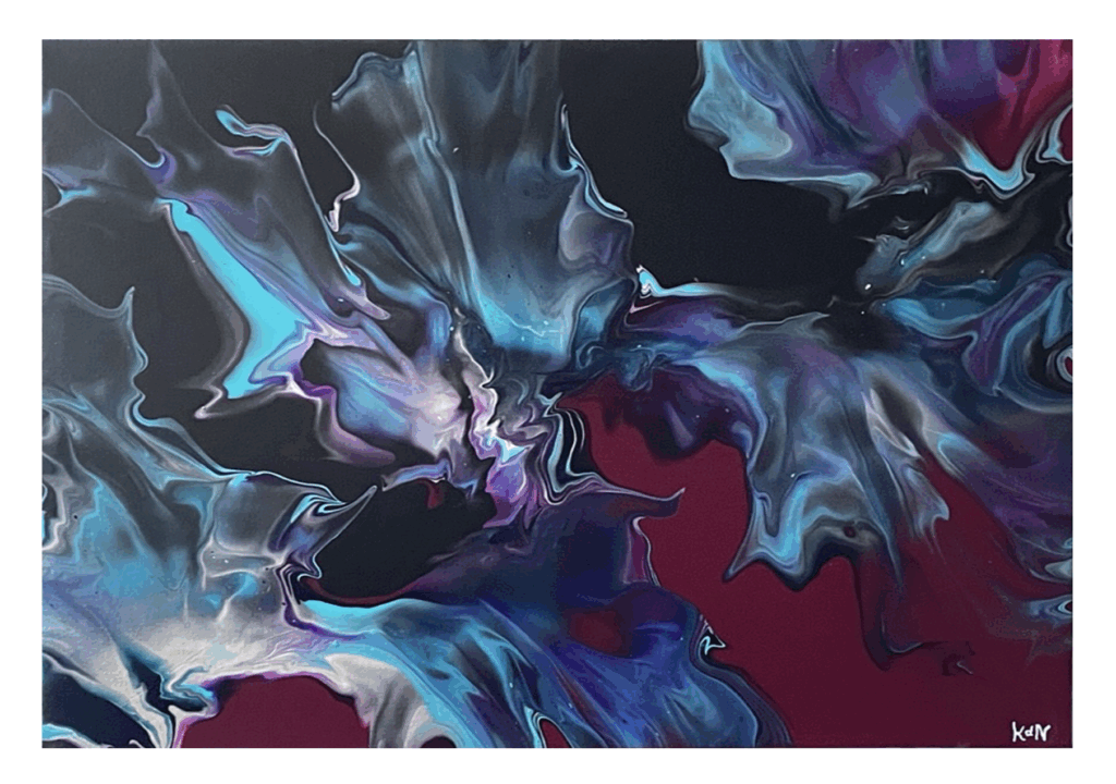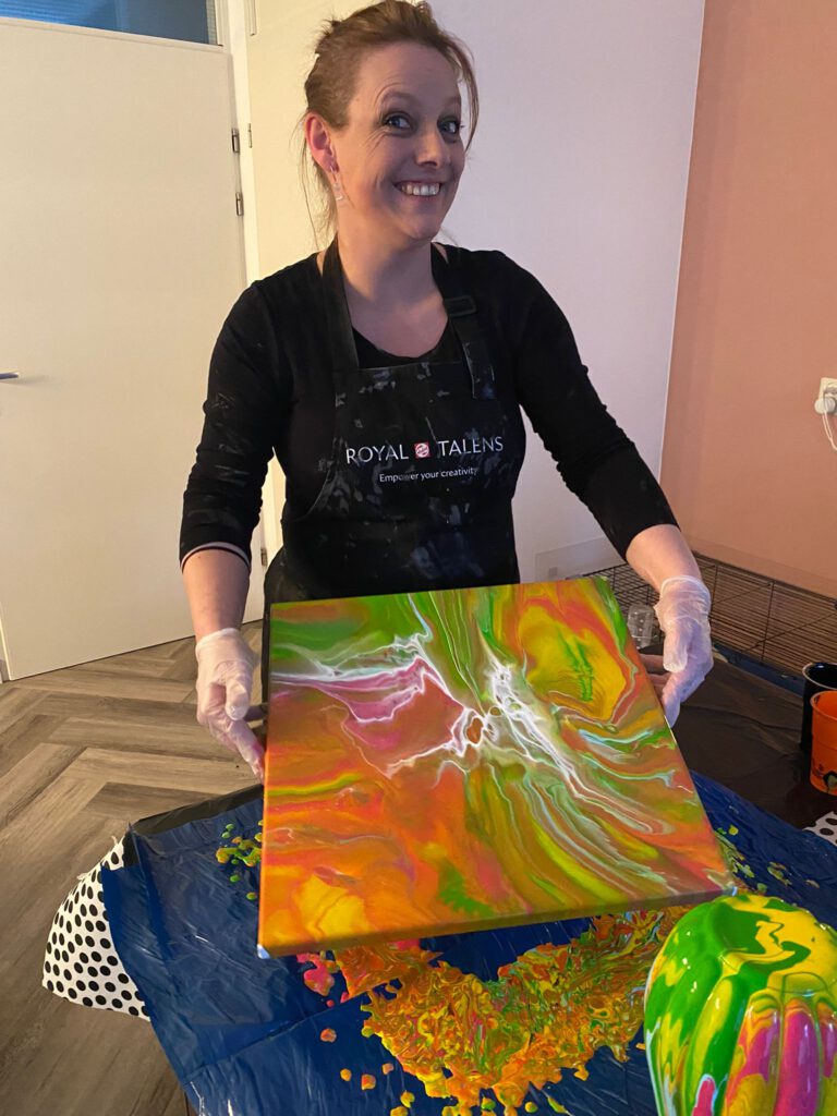Toen ik op mezelf ging wonen had ik al snel ontdekt dat ik schilderen met een kwast en palletmes erg leuk vond. In 2020 kwam ik het eerste filmpje van acrylverf gieten oftewel ‘Pouring Painting’ tegen. Vanaf dat moment was ik verkocht aan deze nieuwe hobby.