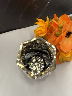 | Kleur | Zwart met gouden en zilveren glitters |